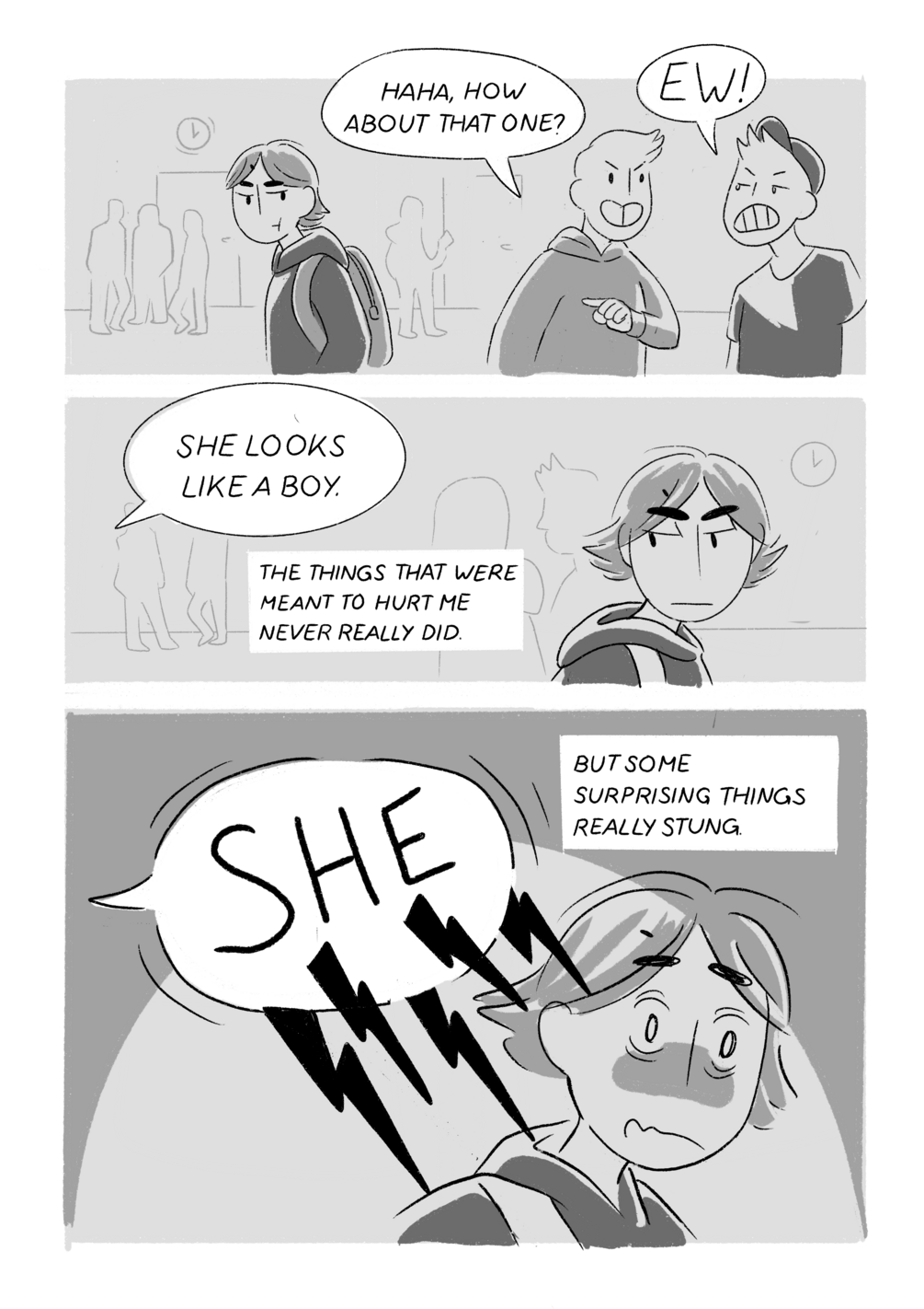 An autobio comic of a 13-year-old and a trans epiphany, setting in rural Finland year 2007.